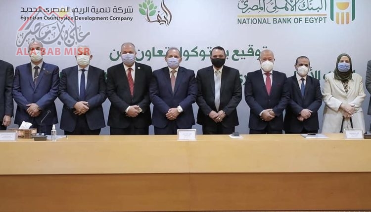 حيث يتم بموجب هذا الاتفاق التعاون المشترك فيما بين شركة تنمية الريف المصرى الجديد والبنك الأهلى المصرى للمساهمة فى دعم المستفيدين المخصص لهم قطع أراضى بالمشروع القومى المليون ونصف المليون فدان بمناطق المشروع المختلفة، ممن ينطبق عليهم تعريف البنك المركزى المصرى الحالى للمشروعات الصغيرة والمتوسطة أو الكبرى، أو ما قد يطرأ عليها من تعديلات مستقبلية، وكذلك ممن ينطبق عليهم شروط وضوابط وأحكام مبادرات البنك المركزى المصرى الحالية وما قد يطرأ عليها من تعديلات مستقبلية.