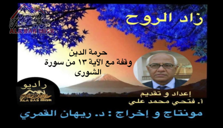 برنامج زاد الروح للأستاذ فتحي محمد علي ووقفة مع الآية رقم ١٣ من سورة الشورى : حرمة الدين مكتبة الميديا بواسطة على باب مصر آخر تحديث أغسطس 20, 2021 314 شارك برنامج زاد الروح للأستاذ فتحي محمد علي ووقفة مع الآية رقم ١٣ من سورة الشورى : حرمة الدين حرمة الدينزاد الروحسورة الشورىفتحي محمد علي 314 شارك