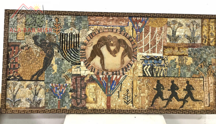 المكان : نادي الاتحاد السكندري. الفكرة: الرياضة ف الحضارات القديمة مع استخدام بعض الرموز لها دلالة علي الرياضة حينذاك الخامات ؛ الرخام والاحجار والازمالط والنحت