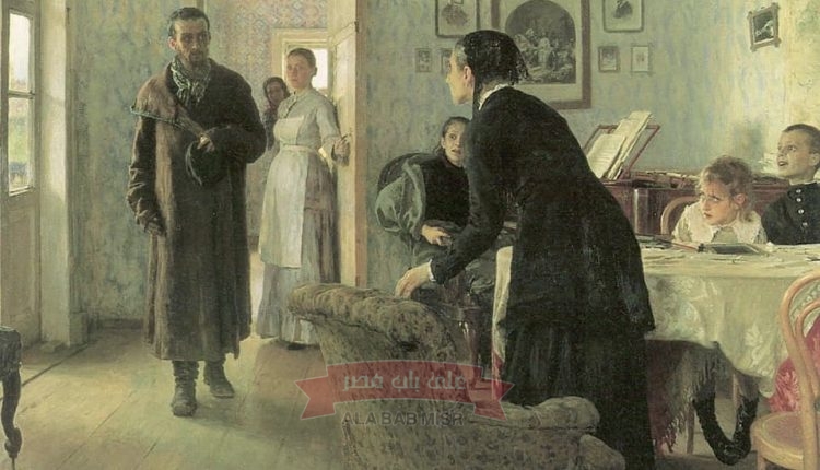 اللوحة ترصد لحظة عودة أحد المنفيين فى سيبيريا بعد الثورة البلشفية عام ١٩١٧ والإفراج عن معتقلى القيصر فى سيبيريا.