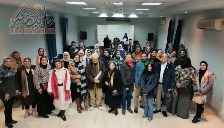 و أدارت الندوة الاستاذة الدكتورة منى رجب بحضور الدكتورة مريم تاج الدين وسيادة اللواء هشام لطفى. والدكتور عادل الصعيدى والعديد من خريجي كلية الفنون الجميلة بجامعة الاسكندرية وطلاب الكلية من قسمى التصوير والديكور .