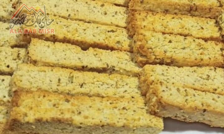 و توضع فى فرن مسخن سابقا لمدة 20 دقيقة وبعد تمام التسوية تخرج من الفرن و تترك لتبرد تماما و تقطع شرائح متوسطة السمك و تدخل الفرن مرة ثانية لمدة 10 دقائق للتحميص.